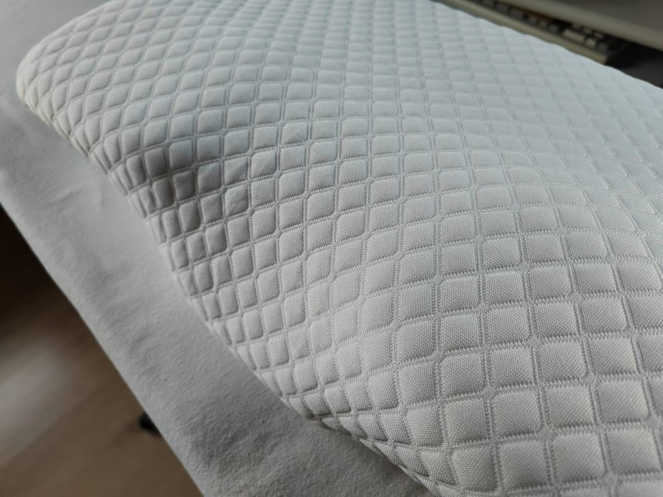 Nein, der Bezug besteht aus atmungsaktivem, waschbarem Material und sorgt für ein angenehm kühles, trockenes Schlafklima. Das Kissen ist hypoallergen, antibakteriell und perfekt für empfindliche Haut geeignet.